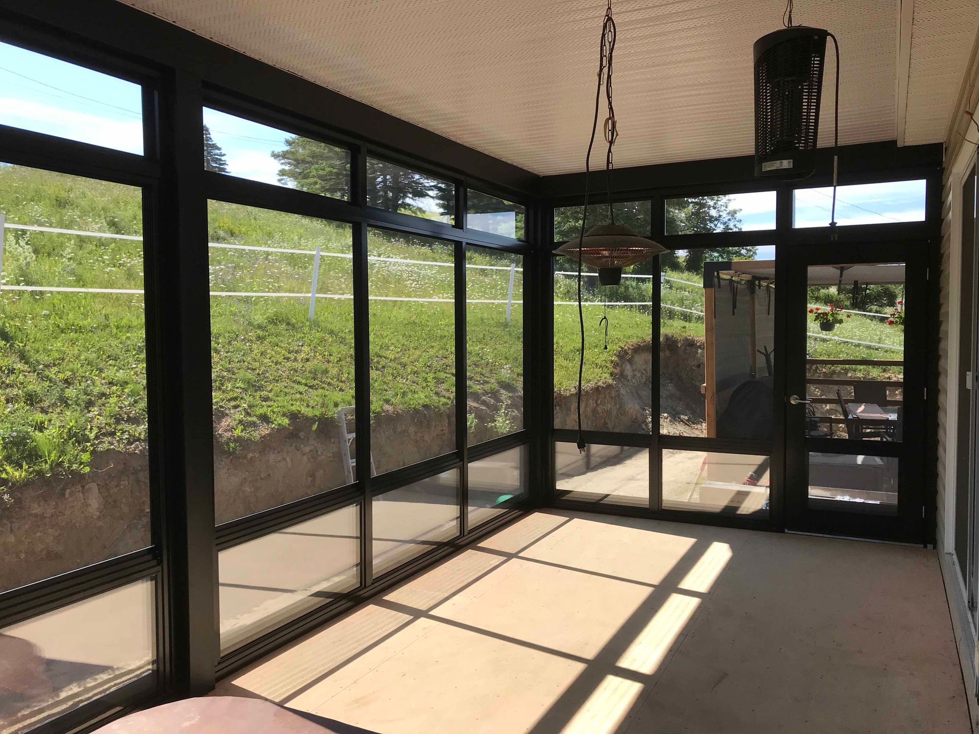 - Cour arrière sous-utilisée : un solarium ou une véranda transforme un espace extérieur peu fonctionnel en pièce à vivre lumineuse, habitable aux premières neiges comme au retour du printemps.